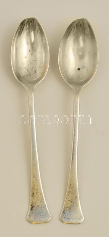 Ezüst(Ag) 2 db teáskanál, kopással, jelzett, h: 15 cm, nettó: 54,2 g https://www.darabanth.com/de/303-Fernauktion/303.0/Juwelen/Juwelen~31/EzustAg-2-db-teaskanal-kopassal-jelzett-h-15-cm-netto-54-2-g~II1628571