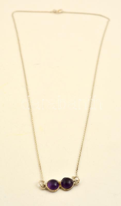 Beschreibung: Ezüst(Ag) nyaklánc ametiszttel díszítve, jelzett, h: 40 cm, bruttó: 1,8 g