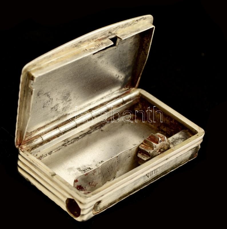 Ezüst(Ag) öngyújtó ház, jelzett, 3x6 cm, nettó: 45,7 g https://www.darabanth.com/de/303-Fernauktion/303.0/Juwelen/Juwelen~31/EzustAg-ongyujto-haz-jelzett-3x6-cm-netto-45-7-g~II1630238