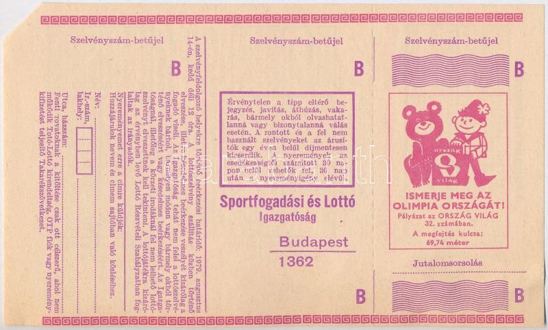 Beschreibung: 1979. "Nemzetközi Olimpiai Sportlottó" lottó szelvény, kitöltetlen T:I-