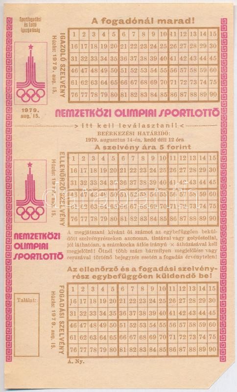 1979. "Nemzetközi Olimpiai Sportlottó" lottó szelvény, kitöl... https://www.darabanth.com/de/303-Fernauktion/303.0/Numismatik/Aktien-und-Tickets~300005/1979-Nemzetkozi-Olimpiai-Sportlotto-lotto-szelveny-kitoltetlen-TI-~II1627941