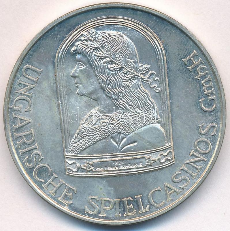 Beschreibung: 1989. "Ungarische Spielcasinos (Magyar Kaszinók) / Budapest" jelzett Ag zseton 100M értékben (30,38g/0.640/43mm) T:2 ujjlenyomat