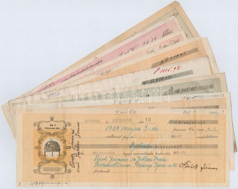 Budapest / Vác 1910-1944. 10db-os vegyes váltó és díjkötelezvény tétel, mind kitöltött, legtöbb bélyegzésekkel és pecsétekkel, sok lyukasztással érvénytelenítve, benne "Hazai Általános Biztositórészvénytársaság", "Ganz és Társa - Danubius gép-, waggon- és hajó gyár részvénytársaság" T:III,III-