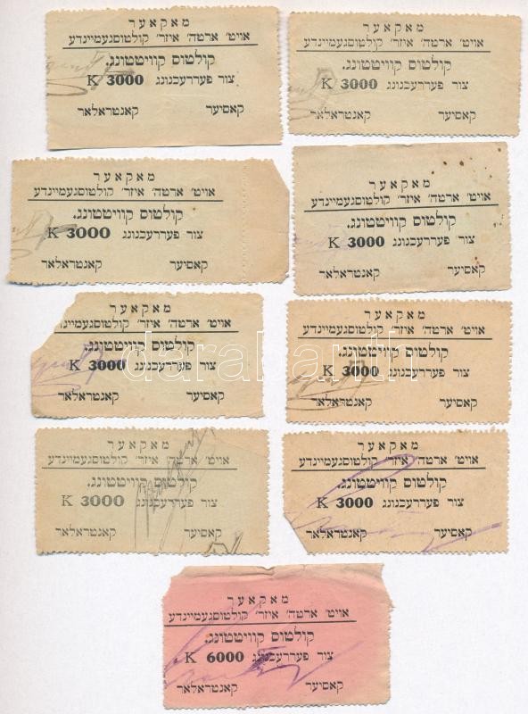 Hungary / Makó ND 9pcs of Hebrew la... https://www.darabanth.com/de/303-Fernauktion/303.0/Numismatik/Notgeld-aus-Papier-und-Metall~300006/Mako-DN-9db-izraelita-barca-TIII--Hungary-Mako-ND-9pcs-of-Hebrew-labels-CF~II1630189
