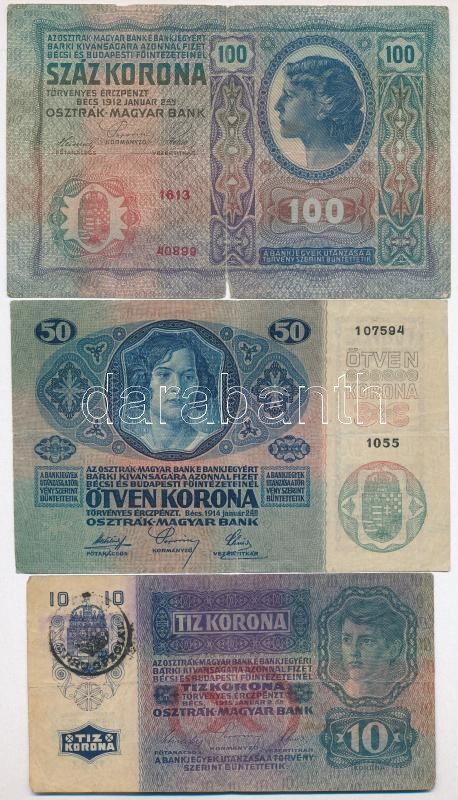 Beschreibung: 1912. 100K + 1914. 50K + 1915. 10K román felülbélyegzéssel T:III,III-