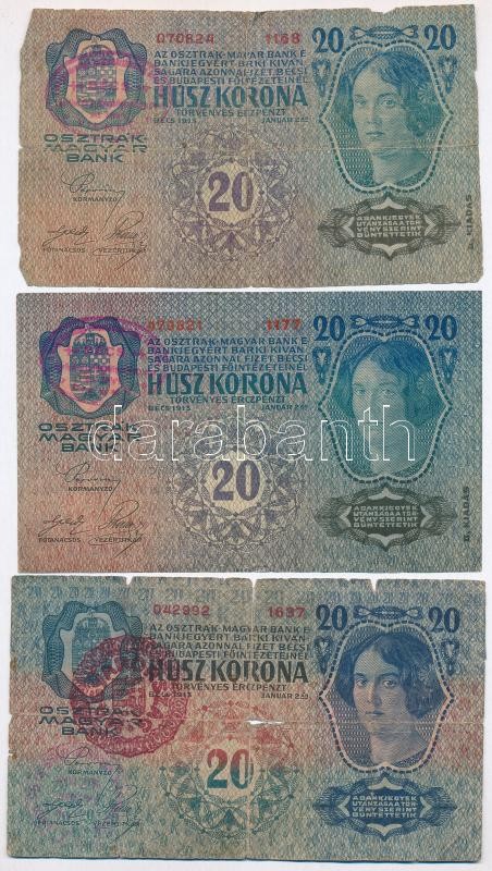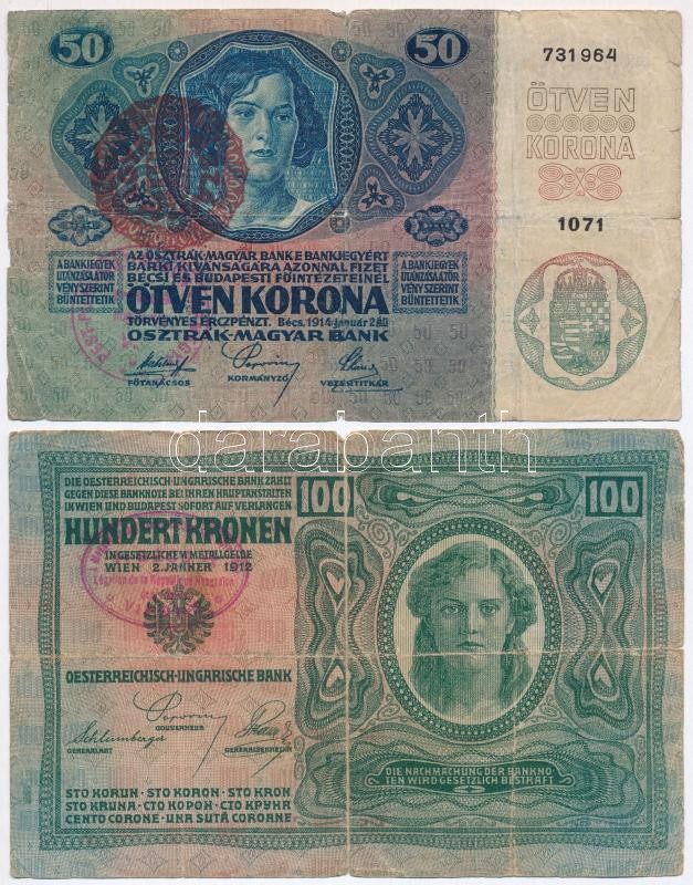 1912-1914. 5db-os vegyes korona bankjegy tétel, mindegyik felülbélyegz... https://www.darabanth.com/de/303-Fernauktion/303.0/Numismatik/Ungarische-Banknoten~300007/1912-1914-5db-os-vegyes-korona-bankjegy-tetel-mindegyik-felulbelyegzett-kozte-hamis-belyegzC3~II1629096
