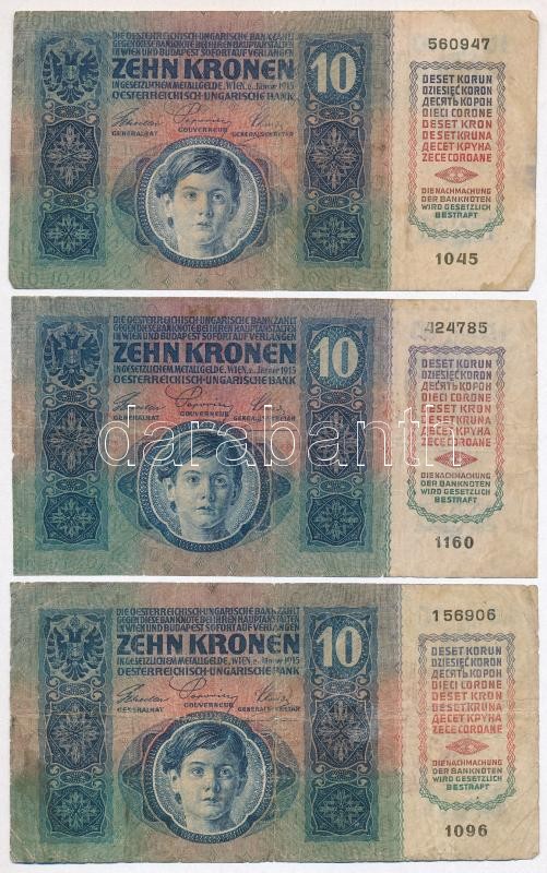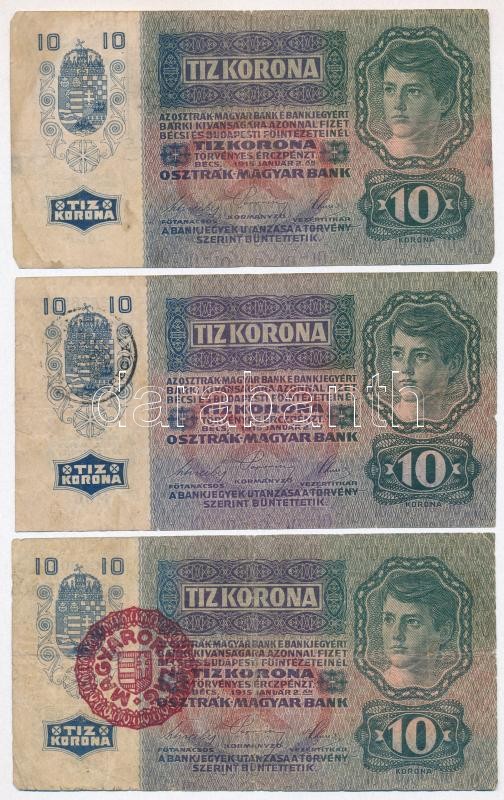 1915. 10K (3xklf) egy román felülbélyegzéssel, egy piros "MAGYARO... https://www.darabanth.com/de/303-Fernauktion/303.0/Numismatik/Ungarische-Banknoten~300007/1915-10K-3xklf-egy-roman-felulbelyegzessel-egy-piros-MAGYARORSZAG-korbelyegzovel-a-ha~II1633204