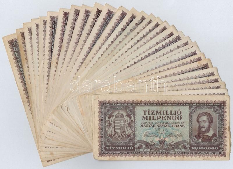 1946. 10.000.000MP (30x) T:III,III- https://www.darabanth.com/de/303-Fernauktion/303.0/Numismatik/Ungarische-Banknoten~300007/1946-10000000MP-30x-TIII-III-~II1631591