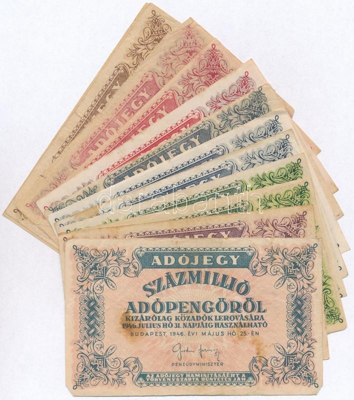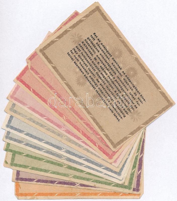 1946. 13db-os vegyes magyar adópengő bankjegy tétel, közte fordított c... https://www.darabanth.com/de/303-Fernauktion/303.0/Numismatik/Ungarische-Banknoten~300007/1946-13db-os-vegyes-magyar-adopengo-bankjegy-tetel-kozte-forditott-cimeres-TIII-III-~II1632361