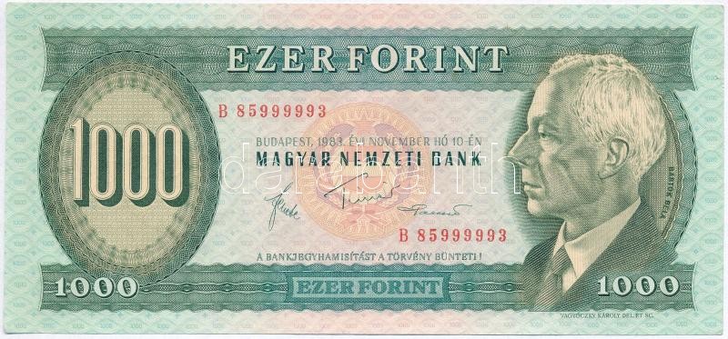 Beschreibung: 1983. november 10. 1000Ft "B" T:II- szép papír