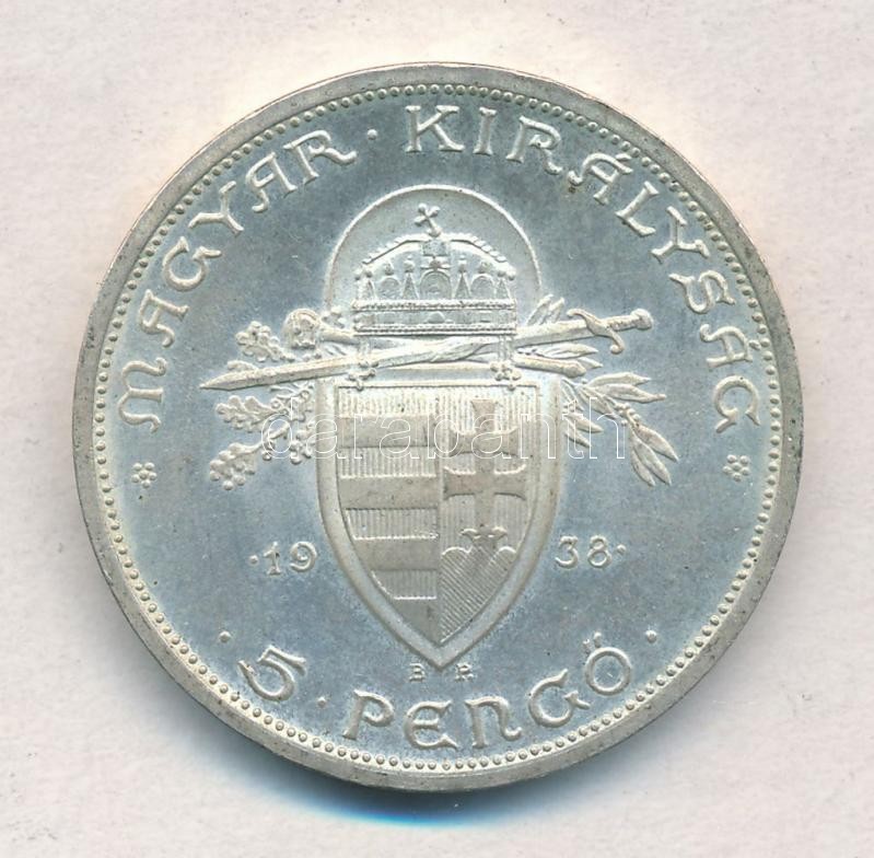 Beschreibung: 1938. 5P Ag "Szent István" T:1-