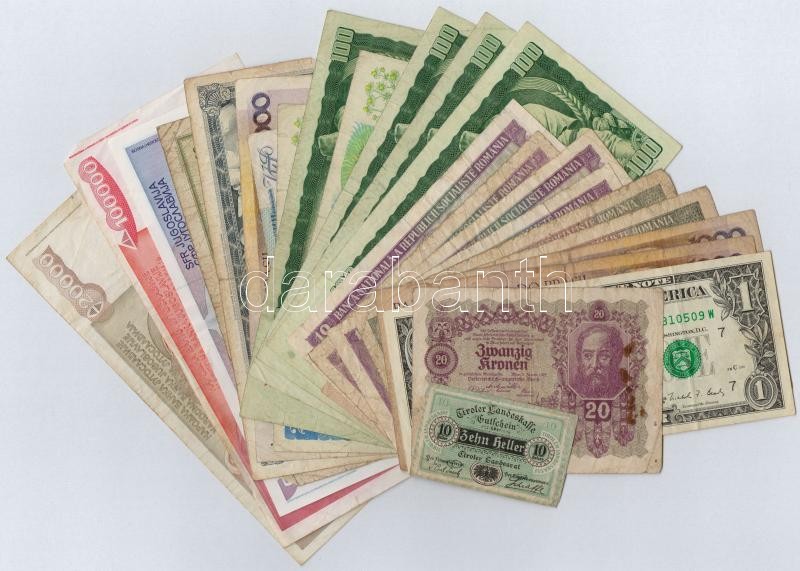 26db-os vegyes külföldi bankjegy tétel, közte Amerikai Egyesült Államok, Brazília, Csehszlovákia, Románia T:III,III-