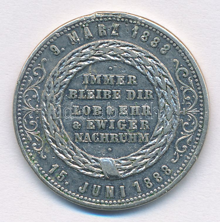 Német Birodalom 1888. "III. Frigyes" ezüstözött fém emlékérem (28mm) T:2- fülnyom German Empire 1888. "Friedrich III" silver plated metal commemorative medallion (28mm) C:VF ear mark