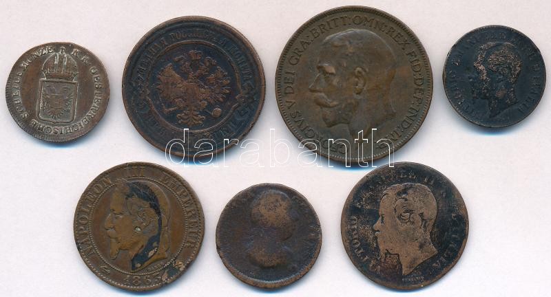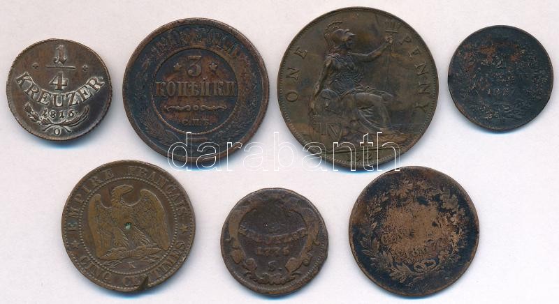7db-os vegyes magyar és külföldi rézpénz tétel, közte 1816O 1/4kr Cu; Orosz Birodalom 1908. 3k Cu T:2,2-,3 ph.