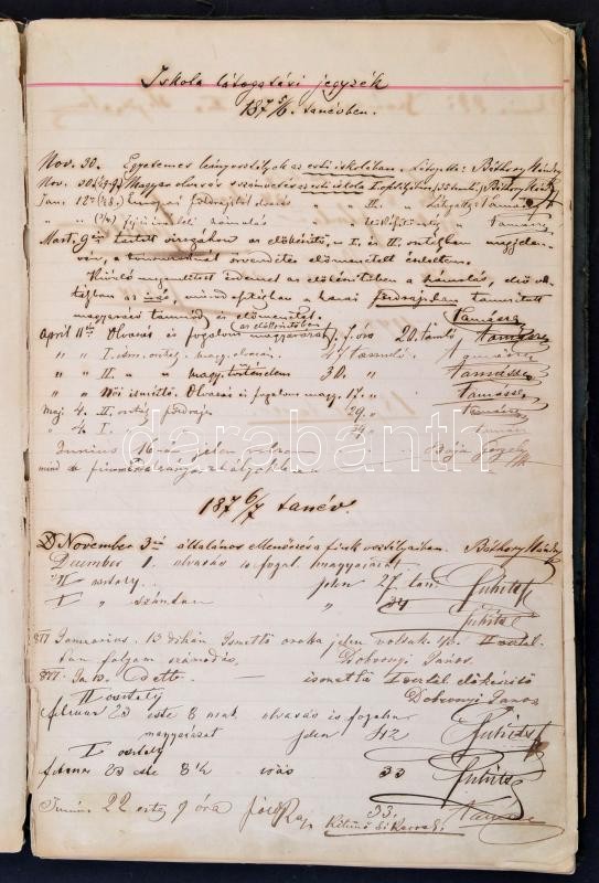 1875-1949 Iskolai látogatási jegyzőkönyv, foltos nagyalakú füzet https://www.darabanth.com/de/304-Fernauktion/304.0/Andere-Sammelgebiete/Dokument~17/1875-1949-Iskolai-latogatasi-jegyzokonyv-foltos-nagyalaku-fuzet~II1636613