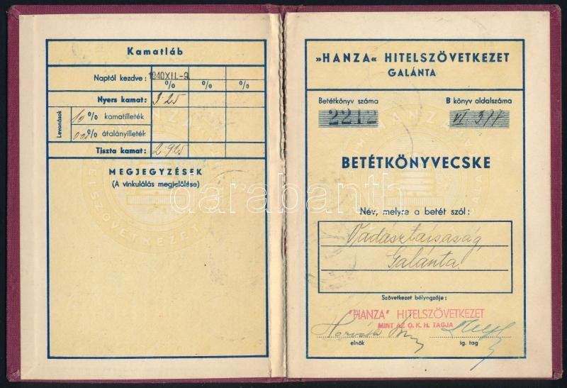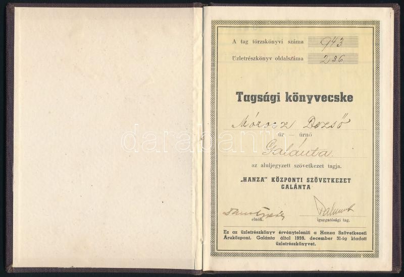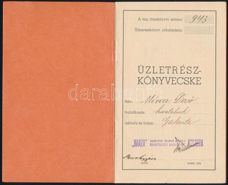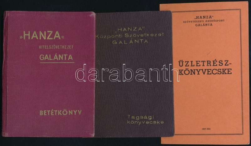 1934-1939 Galánta, A Hanza Szövetkezet tagsági- üzletrész- és betétkön... https://www.darabanth.com/de/304-Fernauktion/304.0/Andere-Sammelgebiete/Dokument~17/1934-1939-Galanta-A-Hanza-Szovetkezet-tagsagi-uzletresz-es-betetkonyve~II1573883