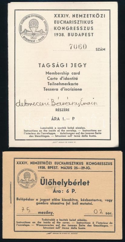 Beschreibung: 1938 XXXIV. Nemzetközi Eucharisztikus Kongresszus tagsági jegy + ülőhelybérlet