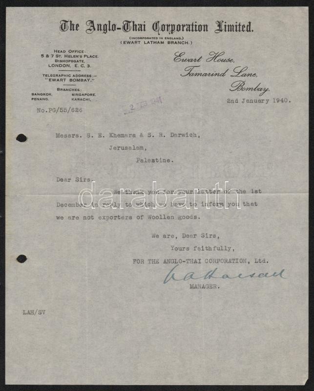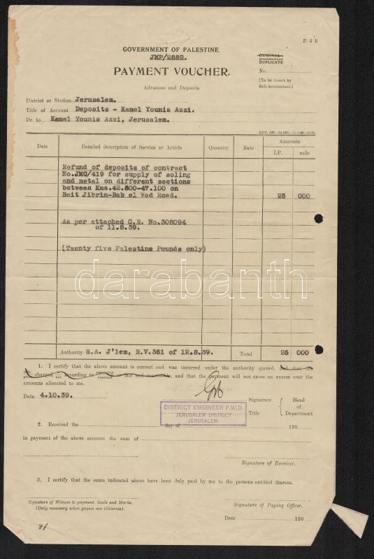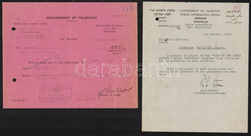 1930-1947 Vegyes papírrégiség tétel, Palesztinából, angol nyelven, 4 d... https://www.darabanth.com/de/304-Fernauktion/304.0/Andere-Sammelgebiete/Drucksachen~28/1930-1947-Vegyes-papirregiseg-tetel-Palesztinabol-angol-nyelven-4-db-4-pieces-of-documents~II1638961
