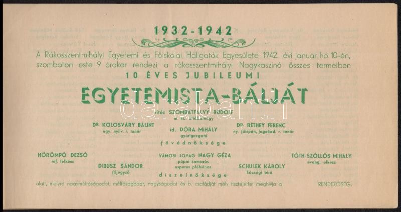 1942 Jubileumi Egyetemista Bál meghívója 6p. https://www.darabanth.com/de/304-Fernauktion/304.0/Andere-Sammelgebiete/Drucksachen~28/1942-Jubileumi-Egyetemista-Bal-meghivoja-6p~II1637621