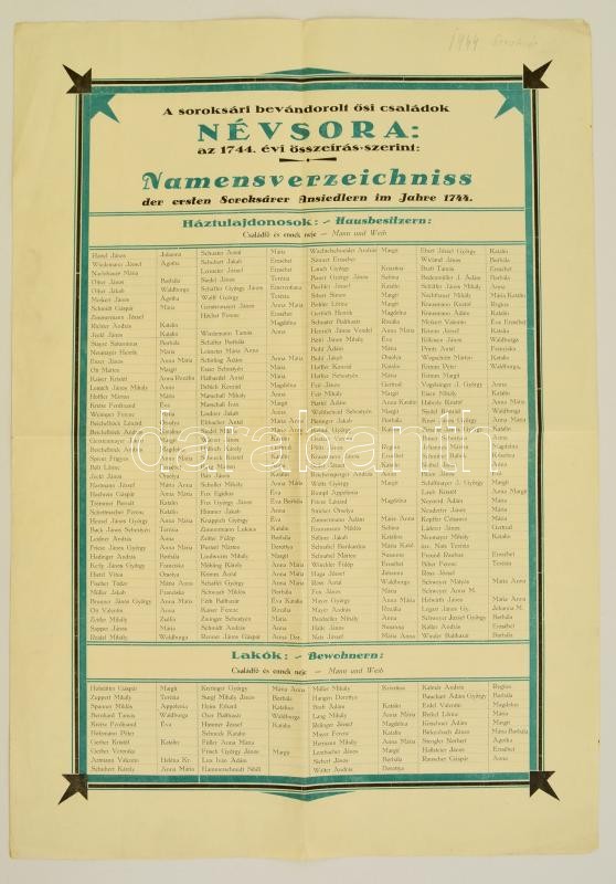 1944 A Soroksári bevándorolt nemes családok névsora. 35x50 cm https://www.darabanth.com/de/304-Fernauktion/304.0/Andere-Sammelgebiete/Drucksachen~28/1944-A-Soroksari-bevandorolt-nemes-csaladok-nevsora-35x50-cm~II1636877