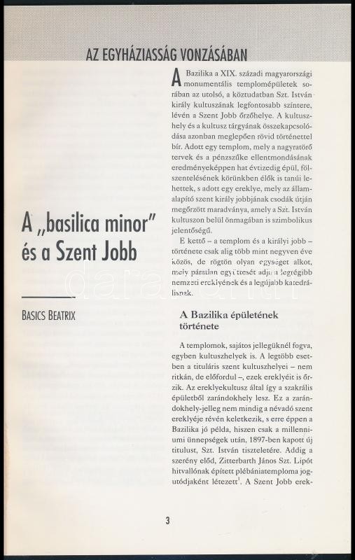 Basics Beatrix: A "basilica minor" és a Szent Jobb. In: Budapesti Negyed. II. évf. 1 sz. 1994 tavasz. Papírkötés, 3-18 p.