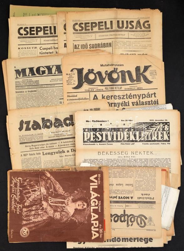 cca 1850-1940 Újságok: Nagyrészt ritka, helyi kiadású és szakmai lapok gyűjteménye, egy évfolyamot megélt lapok, militária, történelmi jelentőségű darabok, majdnem mind nagyon jó állapotban. Összesen 43 db