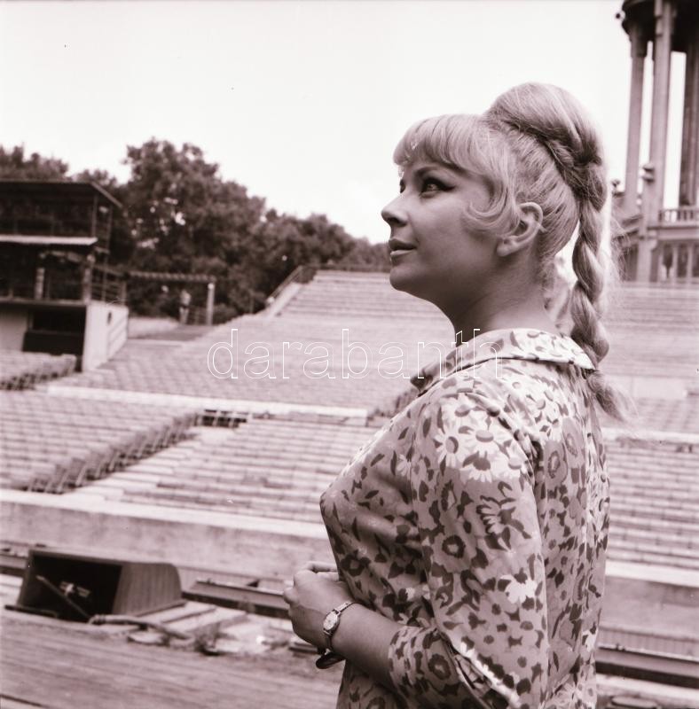 1967 Házi Erzsébet (1929-1982) operaénekesnő, színésznő a Margit szigeten, 12 db vintage negatív Kotnyek Antal (1921-1990) fotóriporter hagyatékából, 6x6 cm