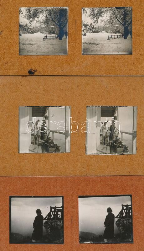 Beschreibung: cca 1920 Privát sztereó felvételek, 13 db sztereó papírpozitív képpár, 9x18 cm