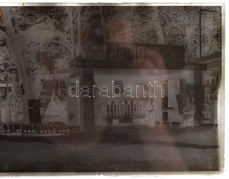 Beschreibung: cca 1930 5 db fotónegatív, közte 2 db az Ast Ede és Társai Vasbetonépítési Rt. árumintavásári standjáról, dobozban, 19×13