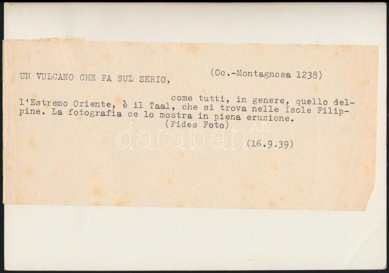 cca 1939 Tűzhányó a Fülöp-szigeteken, olaszul feliratozott sajtófotó, ... https://www.darabanth.com/de/304-Fernauktion/304.0/Andere-Sammelgebiete/Foto~20/cca-1939-Tuzhanyo-a-Fulop-szigeteken-olaszul-feliratozott-sajtofoto-18x13-cm-Philippines-~II1635334