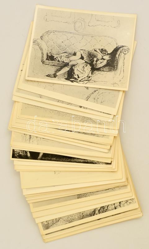 cca 1940 Zichy Mihály erotikus és pornográf rajzairól készült fotó sorozat. Összesen 60 db fénykép. 13x10 cm / 1940 Photo reproductions of the erotic drawings of Mihaly Zichy 60 pieces