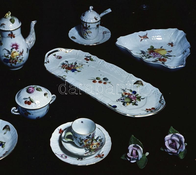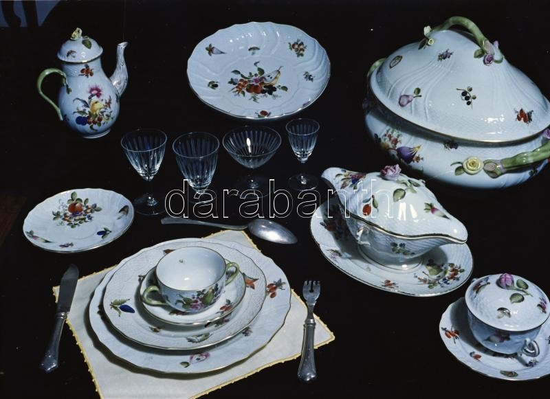 cca 1955 Herendi Porcelángyár termékei, Kotnyek Antal (1921-1990) fotóriporter hagyatékából 12 db vintage negatív + hozzáadva egy képeslapot, 6x9 cm és 9x12 cm