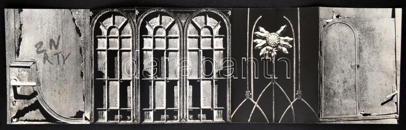 cca 1975 Buray Zsuzsanna: Vasvirág, 5 db leporellóba összeragasztott vintage fotóművészeti alkotás, feliratozva, a kortárs magyar fotográfia avantgard korszakából, 13x18 cm és 18x18 cm között