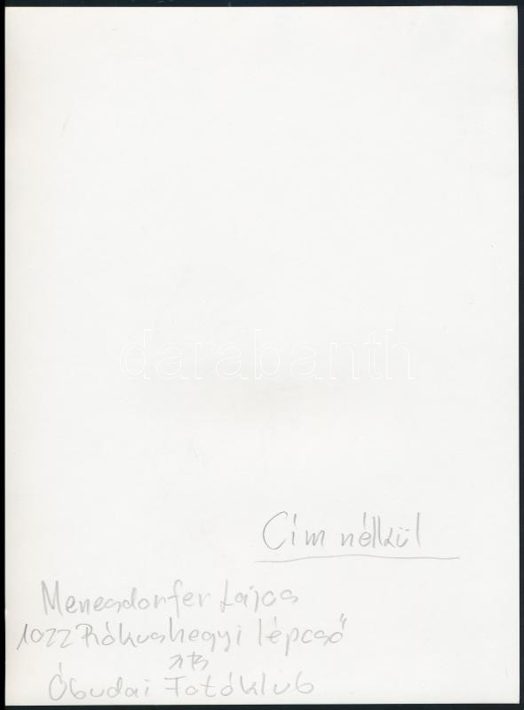 cca 1980 Menesdorfer Lajos (1941-2005) hagyatékából 2 db vintage fotóm... https://www.darabanth.com/de/304-Fernauktion/304.0/Andere-Sammelgebiete/Foto~20/cca-1980-Menesdorfer-Lajos-1941-2005-hagyatekabol-2-db-vintage-fotomuveszeti-alkotas-az-eg~II1635237