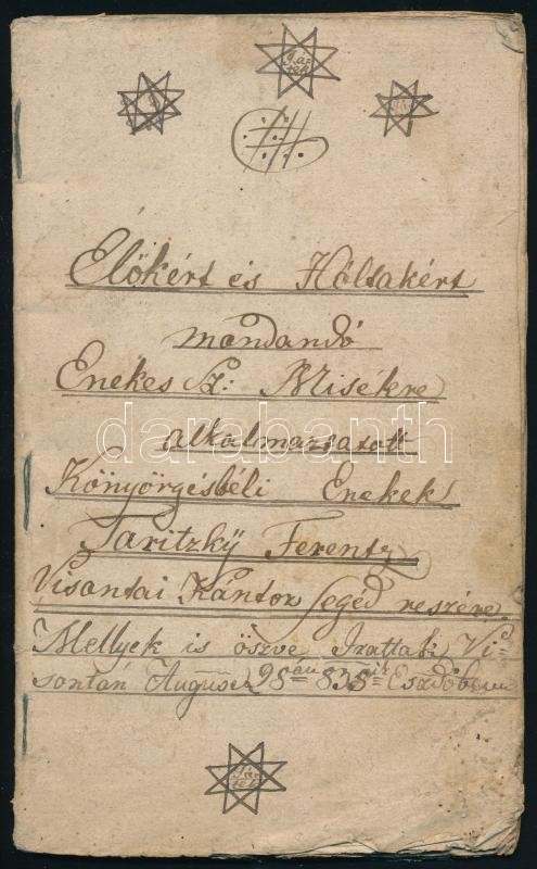 1835 Visonta, miseénekek kézírásos gyűjteménye https://www.darabanth.com/de/304-Fernauktion/304.0/Andere-Sammelgebiete/Historische-Dokumenten-Handschriften~18/1835-Visonta-miseenekek-kezirasos-gyujtemenye~II1638596