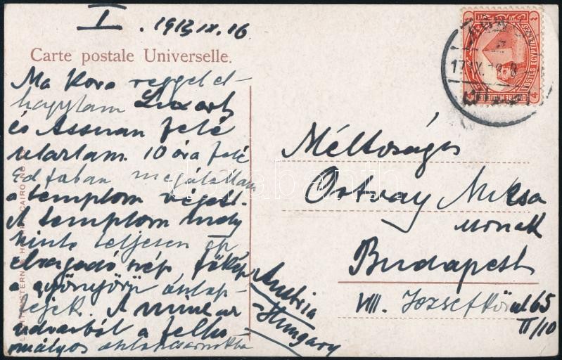 Beschreibung: Ortvay Rudolf (1885-1945) fizikus, egyetemi tanár saját kézzel írt lapja Egyiptomból