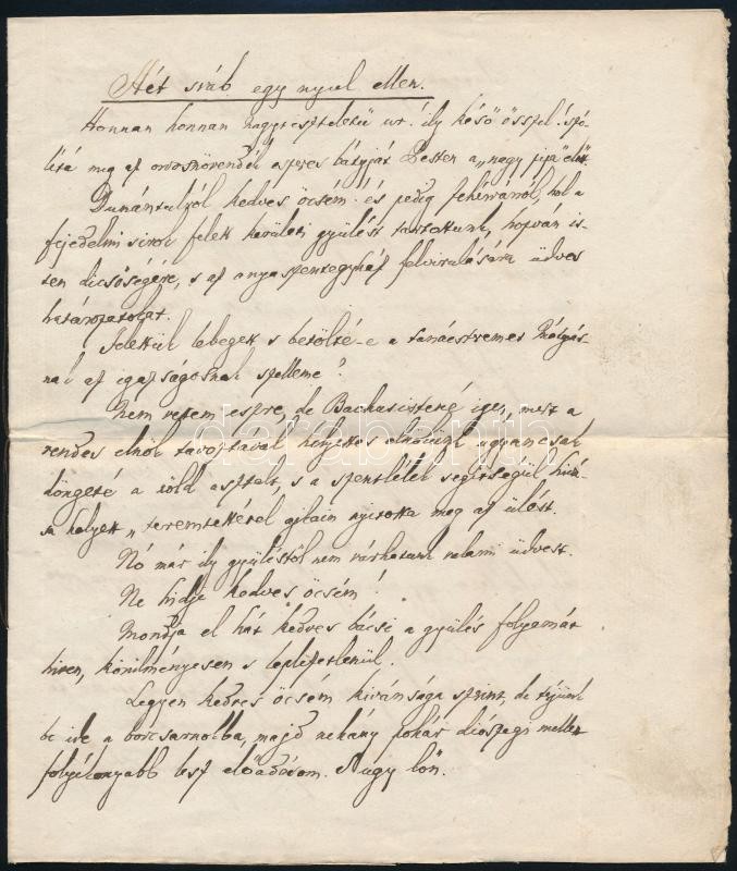 cca 1880 "Hét sváb egy nyúl ellen" ill. "A szakértő és lélekismeretes iskolagondnok", 2 db kézzel írt történet, magyar nyelven, egybefűzve, 8 p.