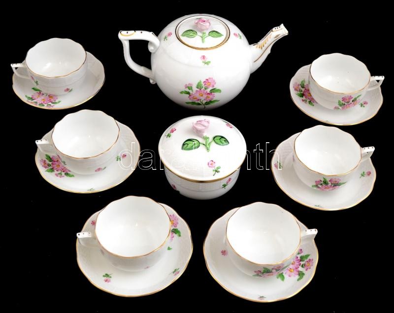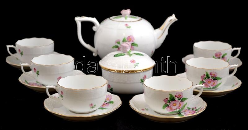 Beschreibung: Herendi virág mintás hiányos teás készlet, kézzel festett, jelzett, hibátlan