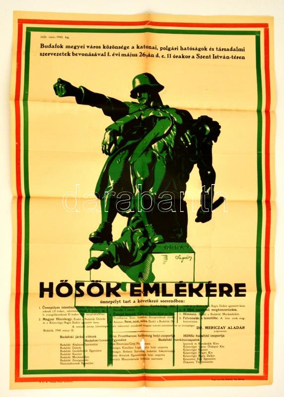 1940 Budafok város - Háborús hősök emlékünnepsége nagyméretű plakát. O... https://www.darabanth.com/de/304-Fernauktion/304.0/Andere-Sammelgebiete/Poster~29/1940-Budafok-varos--Haborus-hosok-emlekunnepsege-nagymeretu-plakat-Orban-jelzessel-h~II1637309