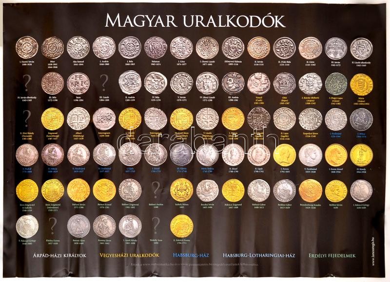 Magyar uralkodók pénzérméken, plakát, 50x 68 cm https://www.darabanth.com/de/304-Fernauktion/304.0/Andere-Sammelgebiete/Poster~29/Magyar-uralkodok-penzermeken-plakat-50x-68-cm~II1634650