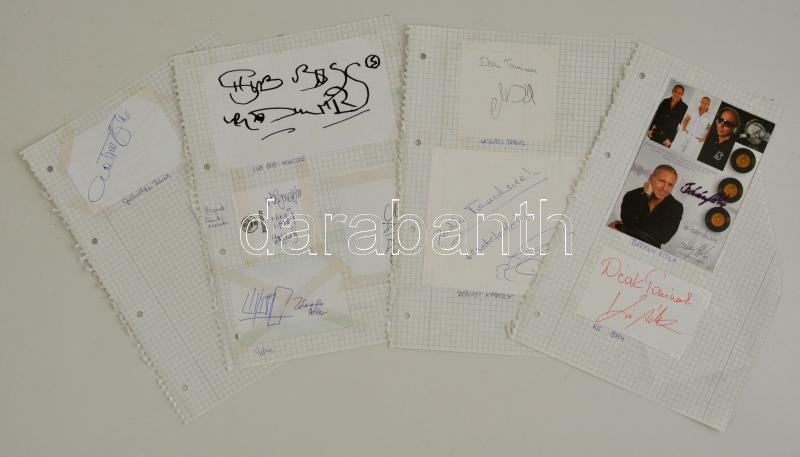 Beschreibung: Kis magyar aláírásgyűjtemény: Dolák-Saly Róbert, Laár András, Mogács Dániel, Esterházy Péter, stb., összesen 20 db