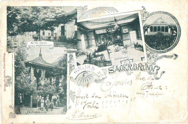 1898 Savanyúkút, Sauerbrunn; Anton Mayer szálloda, étterem / hotel, re... https://www.darabanth.com/de/304-Fernauktion/304.0/Ansichtskarten/Burgenland~300011/1898-Savanyukut-Sauerbrunn-Anton-Mayer-szalloda-etterem-hotel-restaurant-Art-Nouveau-flo~II1639243