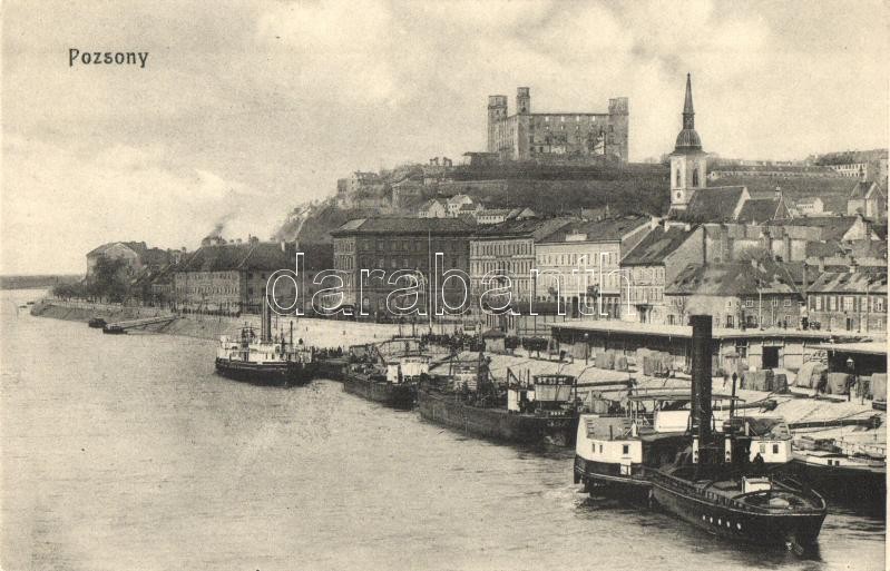 Pozsony, Pressburg, Bratislava; Kikötő hajókkal / port with steamships https://www.darabanth.com/de/304-Fernauktion/304.0/Ansichtskarten/Slowakei~300007/Pozsony-Pressburg-Bratislava-Kikoto-hajokkal-port-with-steamships~II1636845