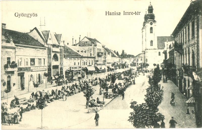 Beschreibung: Gyöngyös, Hanisz Imre tér, piac, Deutsch Salamon és fia és Steinitz Gábor üzlete