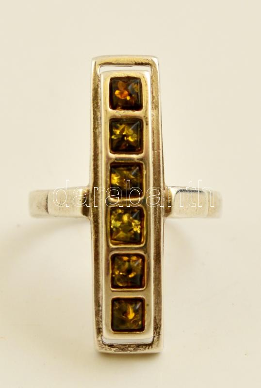 Beschreibung: Ezüst (Ag.) gyűrű borostyánnal, méret:55, bruttó: 6 g,