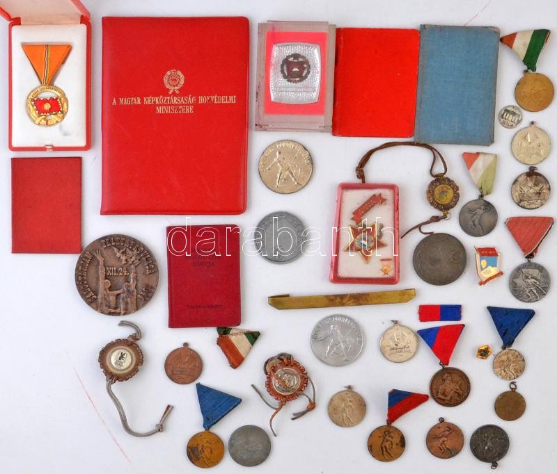 ~1950-1989. Kis zacskónyi kitüntetés, emlékérem és hozzájuk kapcsolódó okirat tétel, közte 1959. "Tanácsköztársasági Emlékérem" eredeti szalagon T:vegyes