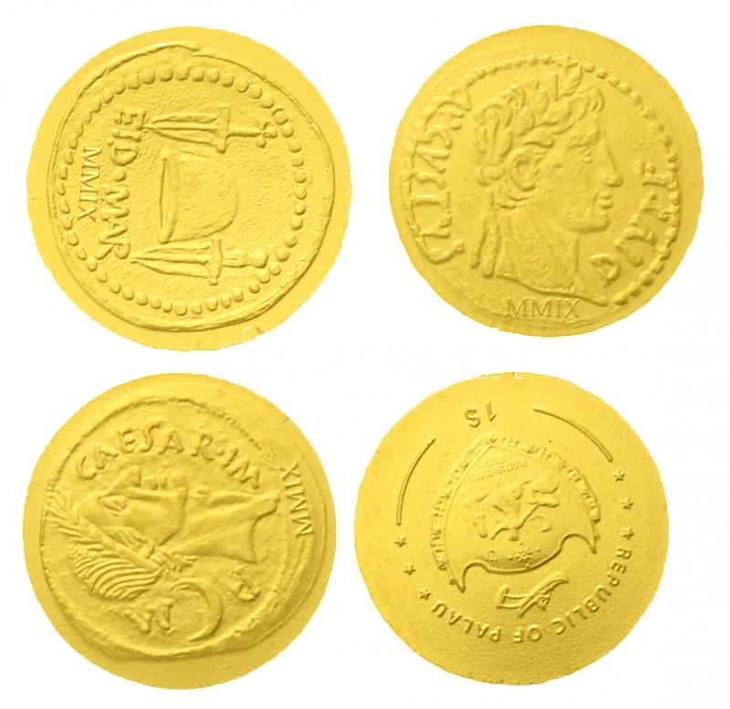 Palau 2009. 1$ Au "Augustus Aureus" (0.5g/0.999) + 1$ Au "Germanicus Dupondius" (0.5g/0.999) + 1$ Au "Julius Caesar Denár" (0,5g/0.999) + 1$ Au "Brutus Denár" (0,5g/0.999) mind a négy egy dísztokban, tanúsítvánnyal T:BU Palau 2009. 1 Dollar Au "Augustus Aureus" (0.5g/0.999) + 1 Dollar Au "Germanicus Dupondius" (0.5g/0.999) + 1 Dollar Au "Julius Caesar Denarius" (0,5g/0.999) + 1 Dollar Au "Brutus Denarius" (0,5g/0.999) C:BU Krause KM#235, 236,237,238.