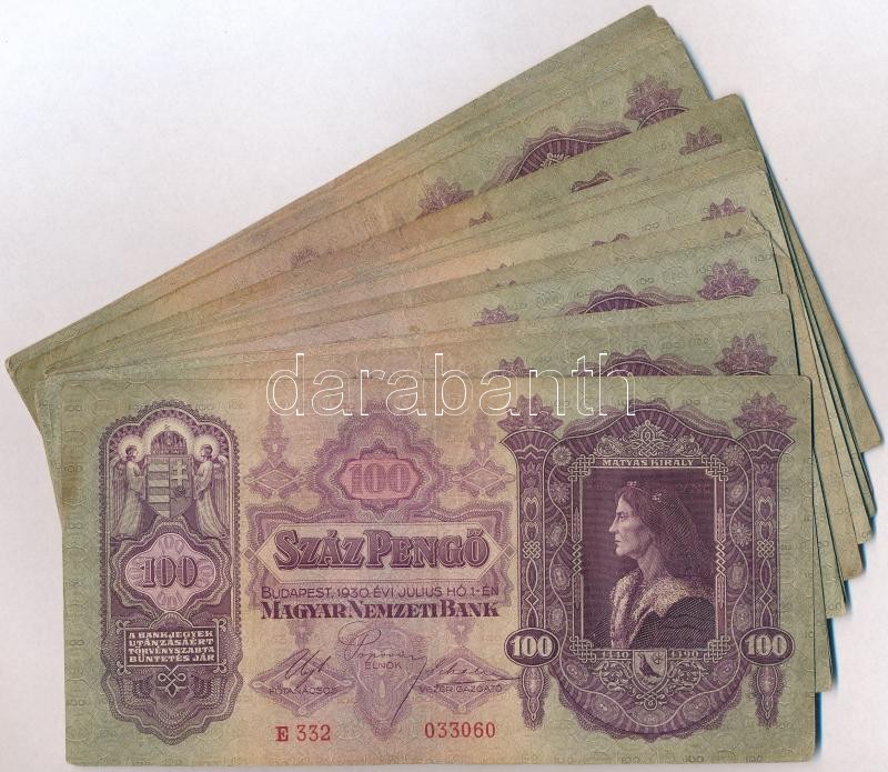 1930. 100P (30x) T:III,III- https://www.darabanth.com/de/304-Fernauktion/304.0/Numismatik/Ungarische-Banknoten~500007/1930-100P-30x-TIII-III-~II1636518