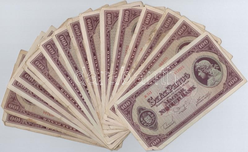 1945. 100P (28x) T:III,III- közte szép papír is https://www.darabanth.com/de/304-Fernauktion/304.0/Numismatik/Ungarische-Banknoten~500007/1945-100P-28x-TIII-III-kozte-szep-papir-is~II1639398