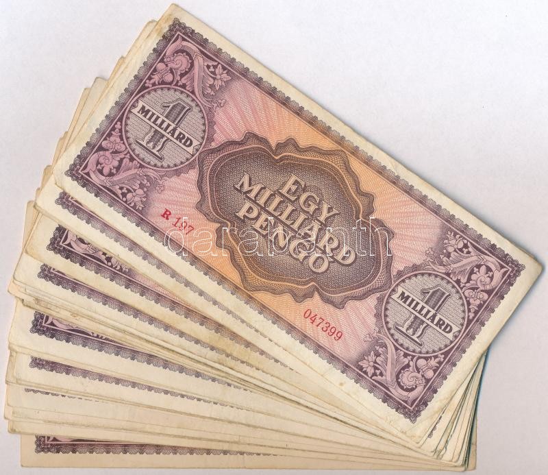 1946. 1.000.000.000P (30x) T:III,III- https://www.darabanth.com/de/304-Fernauktion/304.0/Numismatik/Ungarische-Banknoten~500007/1946-1000000000P-30x-TIII-III-~II1636547